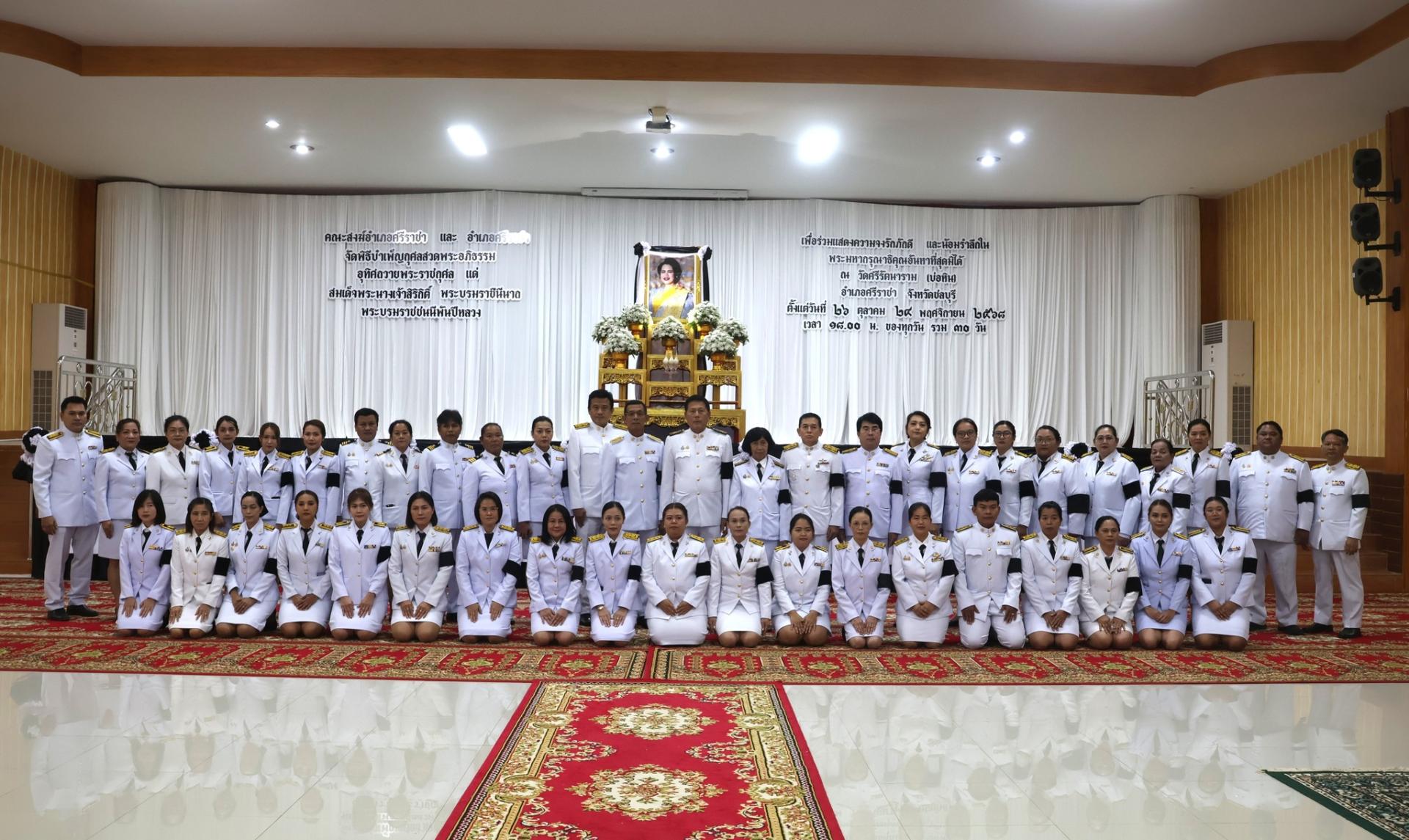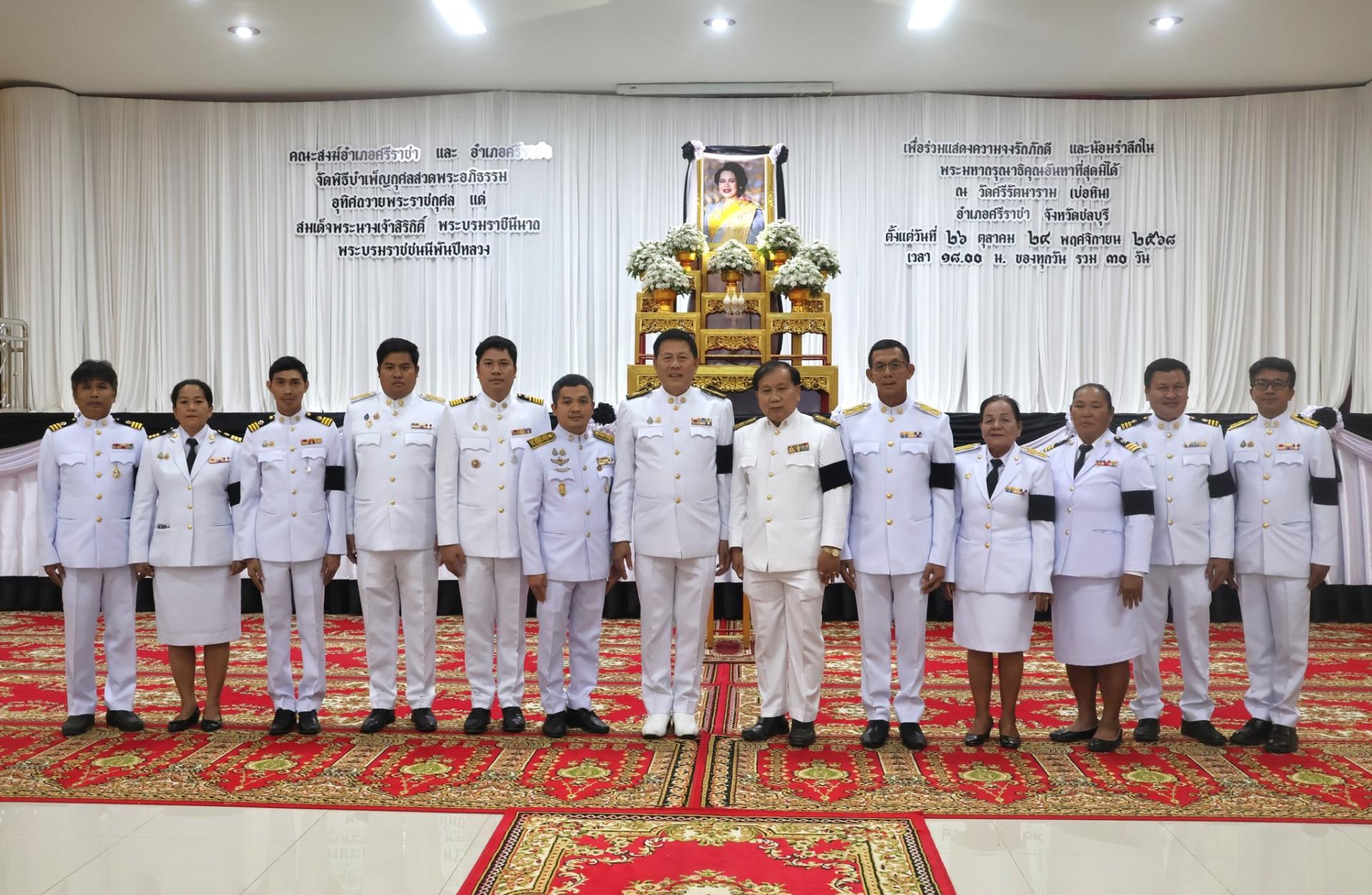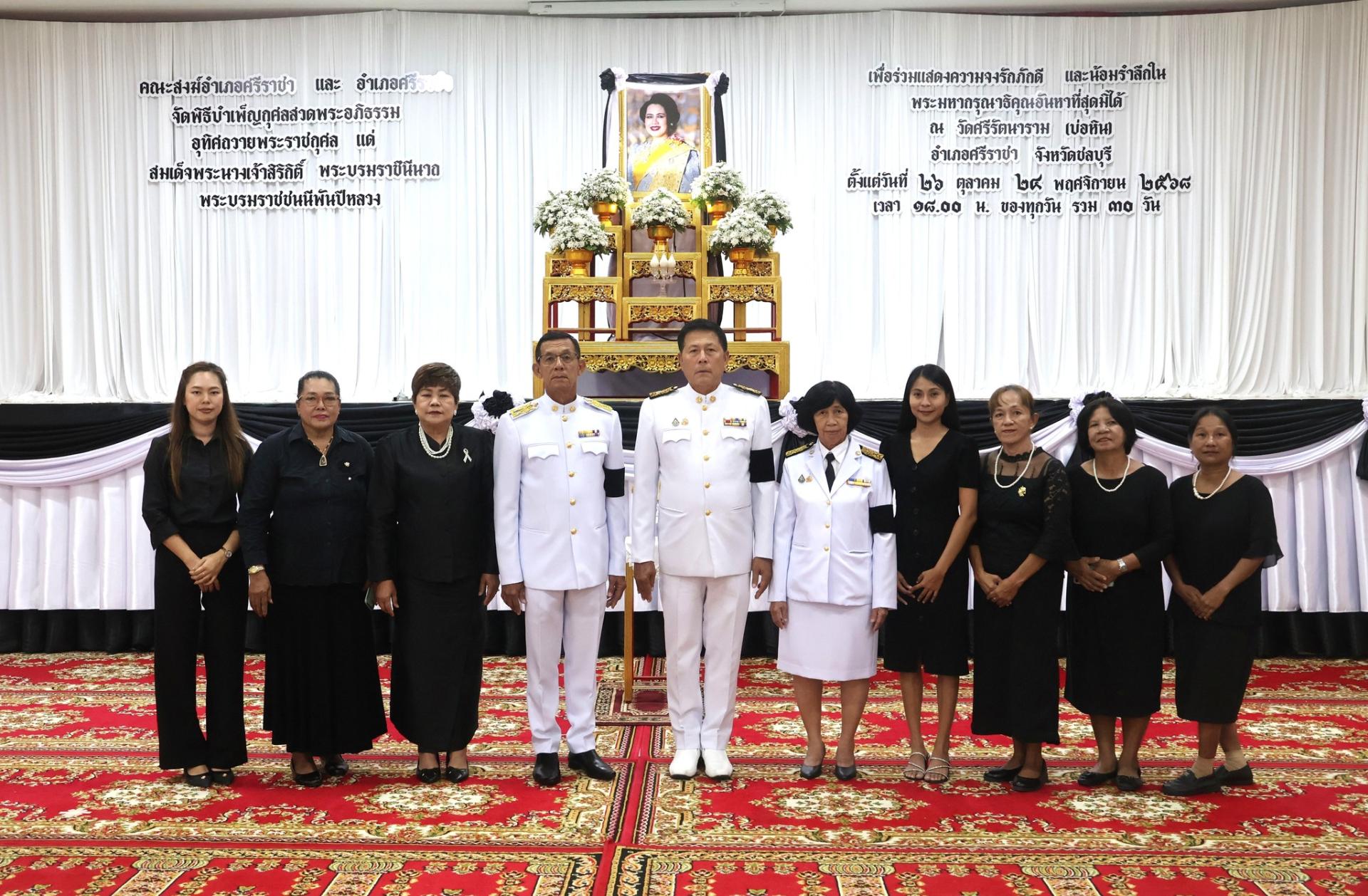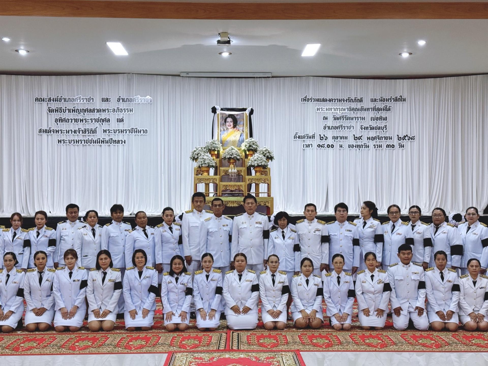 วันที่ 1 พฤศจิกายน 2568 เวลา 18.00 น. องค์การบริหารส่วนตำบลบางพระนำโดย นายสมศักดิ์ เกตุวัตถา นายก อบต. บางพระ ร่วมกับ ชมรมกำนันผู้ใหญ่บ้านตำบลบางพระ เป็นเจ้าภาพจัดพิธีบำเพ็ญกุศลสวดพระอภิธรรมอุทิศถวายพระราชกุศล แด่สมด็จพระนางเจ้าสิริกิต์ พระบรมราชินีนาถ พระบรมราชชนนีพันปีหลวง เพื่อร่วมแสดงความจงรักภักดี และน้อมรำลึกในพระมหากรุณาธิคุณอันหาที่สุดมิได้ ณ วัดศรีรัตนาราม (บ่อหิน) อำเภอศรีราชา จังหวัดชลบุรี